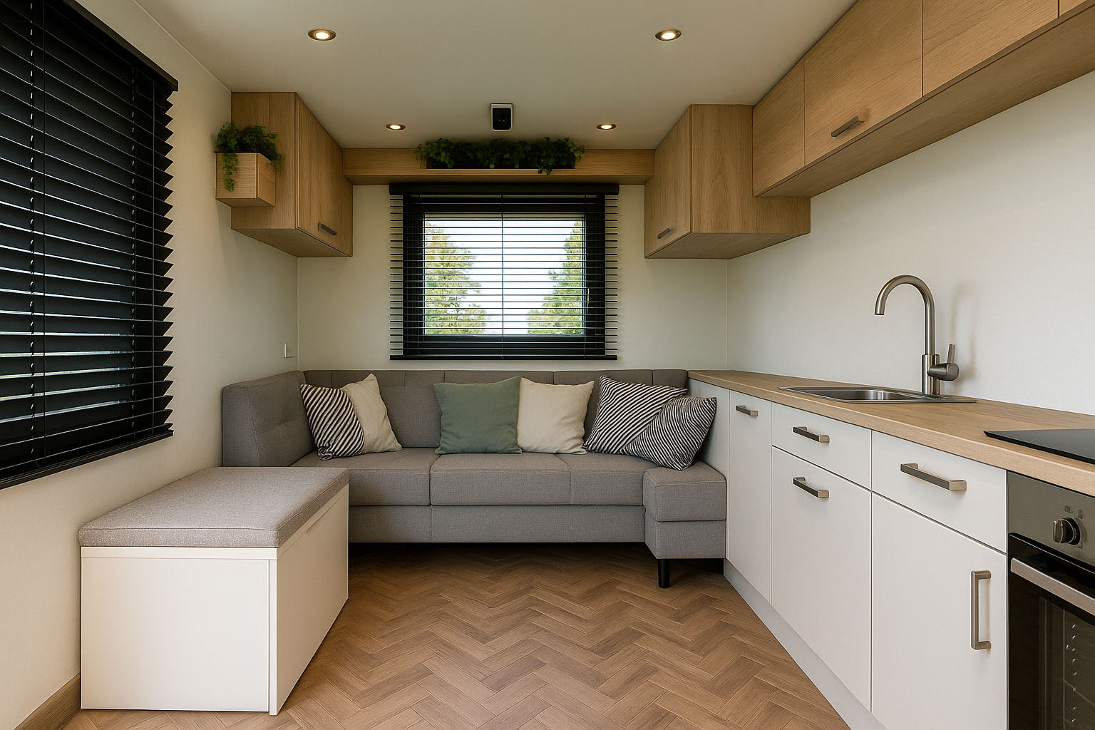 Compact, comfortabel en met dezelfde aandacht voor afwerking en design als onze Buitenkamers. Voor wie tijdelijk wil ontsnappen óf structureel wil investeren in ruimte met beleving.